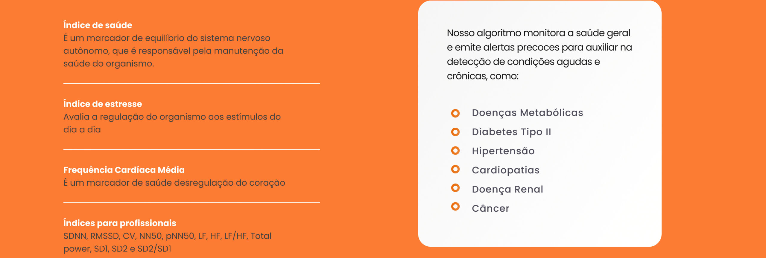 A HRV4Life oferece uma plataforma de saúde digital voltada para prevenção, predição e acompanhamento fisiológico contínuo, com soluções personalizáveis para diferentes perfis de clientes.
